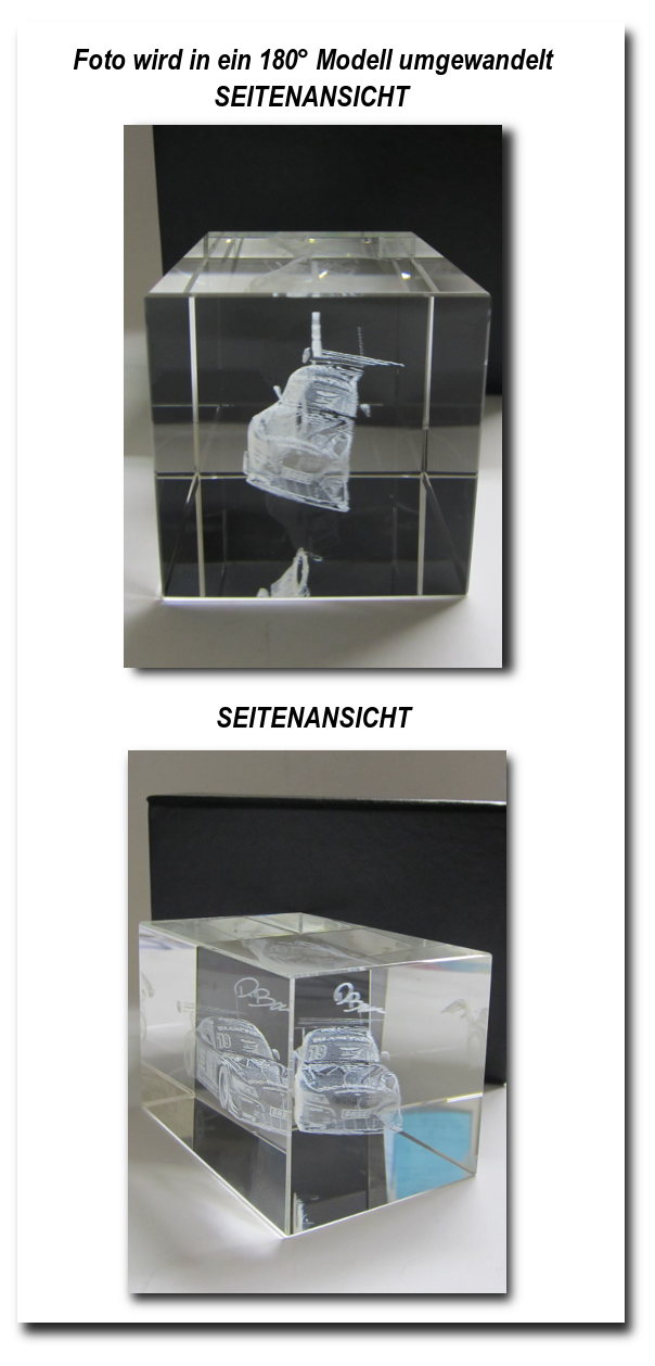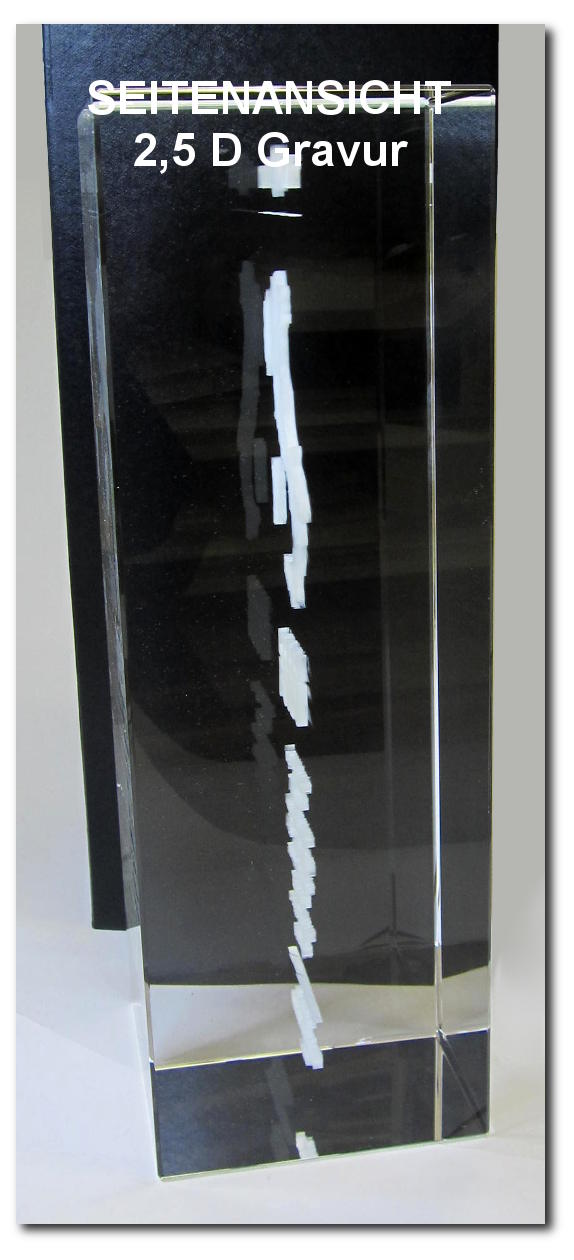 Egal ob Fotos ihrer Familie, Gegenstände oder Logos, wir gravieren ihr Sujets in 3D in ihr gewünschtes Glasobjekt. Diese 3D Awards sind besonders als Geschenke, Werbegeschenke oder Give-Aways mit einem "Wow" Effekt, gefragt.