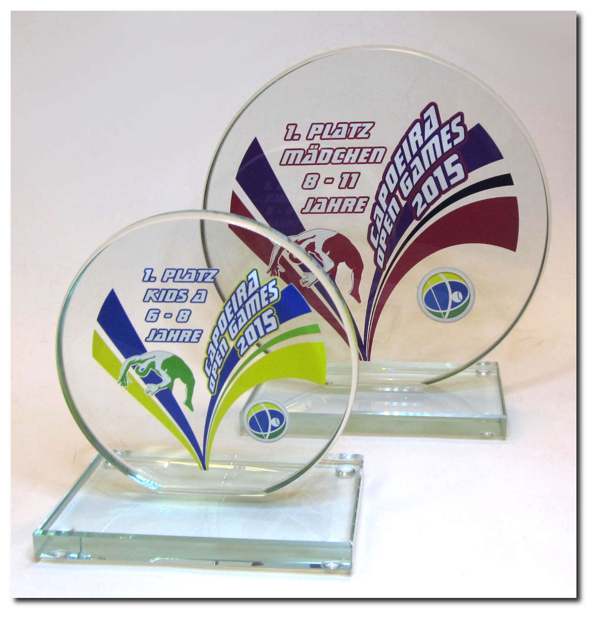 Glaspokale und Glastrophäen ja nach Modell mit Gravur und/oder UV-Druck von "BARTA Pokale", ihr Spezialist für Glaspokale.