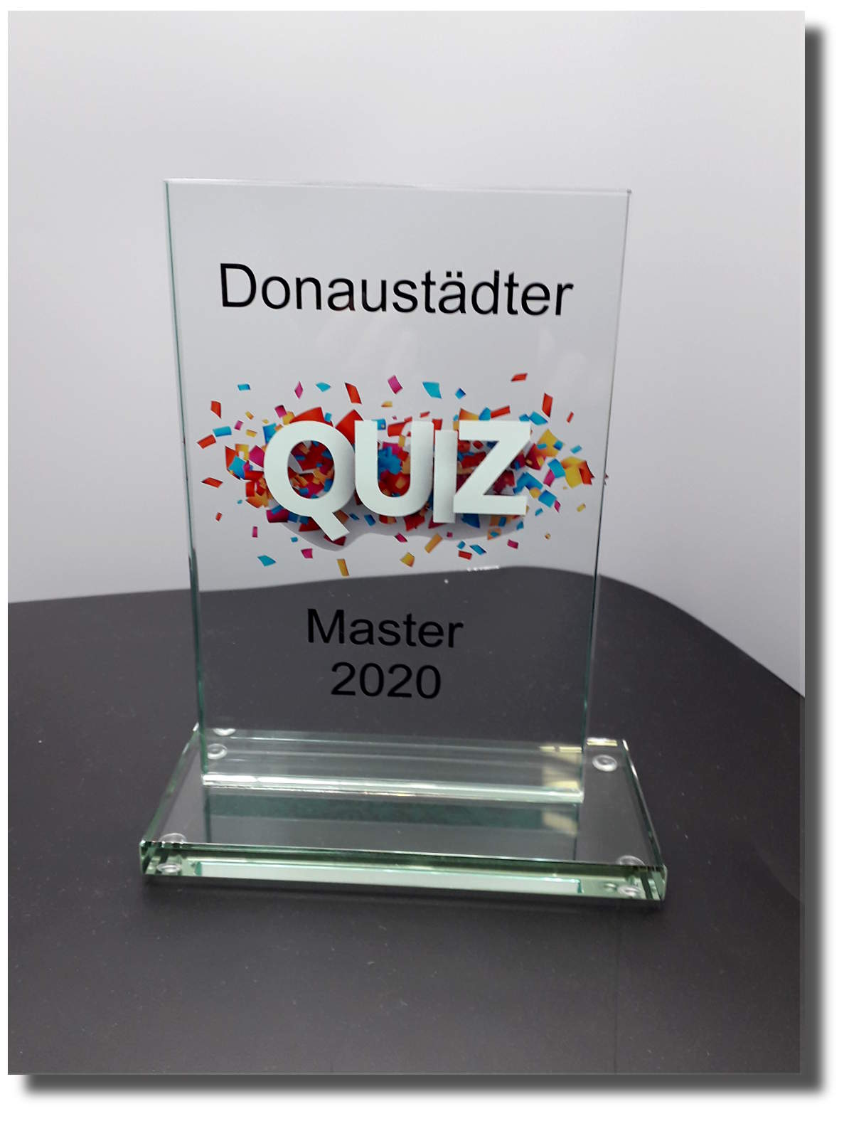 Die Glastrophäe ist in einer weißen Transportschachtel verpackt! KEINE Geschenkkassette.