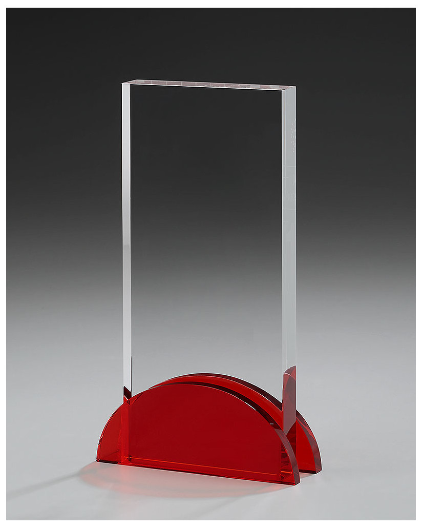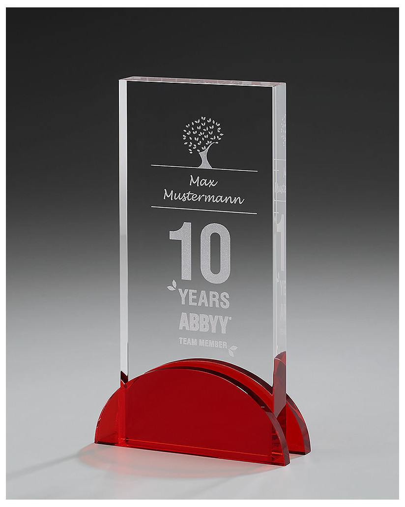 Die Kombination einer Halbkugel aus rotem Kristallglas als Sockel und einer starken Kristallglasplatte: Ein stylischer, eleganter Award.