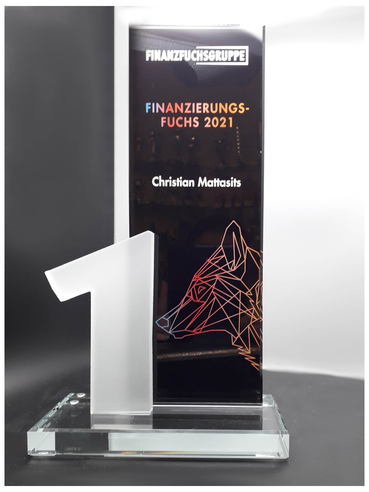 Exklusiver, schwerer Glaspokal mit satinierter (sandgestrahlter) Nr.'1. Sockelhöhe 19mm. Die Glastrophäe kann mit einer Lasergravur und/oder UV-Druck versehen werden.