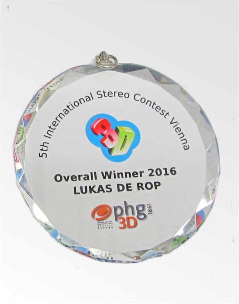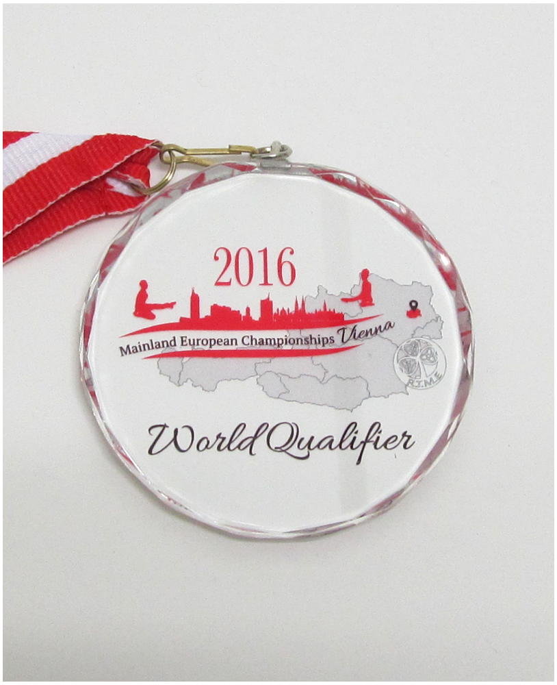Günstige Glasmedaille mit einseitigem Facettenschliff. Durchmesser 70mm.